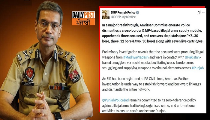 ਅੰਮ੍ਰਿਤਸਰ ਕਮਿਸ਼ਨਰੇਟ ਪੁਲਿਸ ਨੇ ਗੈਰ-ਕਾਨੂੰਨੀ ਹਥਿਆਰਾਂ ਦੀ ਤਸਕਰੀ ਵਿੱਚ ਸ਼ਾਮਲ ਇੱਕ ਅੰਤਰਰਾਜੀ ਅਤੇ ਸਰਹੱਦ ਪਾਰ ਨੈੱਟਵਰਕ ਦਾ ਪਰਦਾਫਾਸ਼ ਕੀਤਾ ਹੈ। ਇਸ...