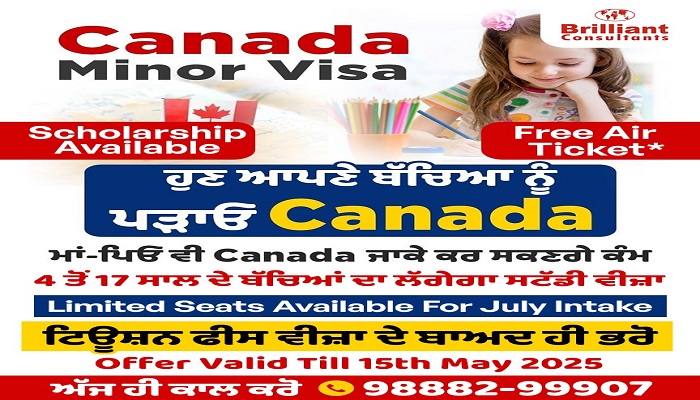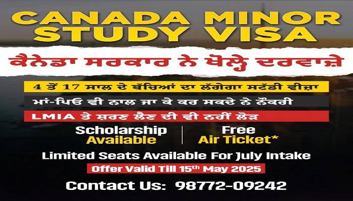 ਕੈਨੇਡਾ ਮਾਈਨਰ ਸਟਡੀ ਵੀਜ਼ਾ – ਆਪਣੇ ਬੱਚਿਆਂ ਨੂੰ ਚਮਕਦਾਰ ਭਵਿੱਖ ਵੱਲ ਲੈ ਜਾਓ! ਆਫਰ ਸਿਰਫ਼ 15 ਮਈ ਤੱਕ