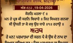 ਸ੍ਰੀ ਦਰਬਾਰ ਸਾਹਿਬ ਤੋਂ ਅੱਜ ਦਾ ਹੁਕਮਨਾਮਾ 19-4-2026