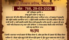 ਸ੍ਰੀ ਦਰਬਾਰ ਸਾਹਿਬ ਤੋਂ ਅੱਜ ਦਾ ਹੁਕਮਨਾਮਾ 29-3-2026
