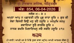 (ਹੇ ਭਾਈ! ਆਪਣੇ ਮਨ ਦੇ ਪਿੱਛੇ ਤੁਰਨ ਵਾਲਾ ਮਨੁੱਖ) ਆਪਣੇ ਆਤਮਕ ਜੀਵਨ ਨੂੰ (ਕਦੇ) ਪਰਖਦਾ ਨਹੀਂ, ਉਹ ਪਰਮਾਤਮਾ ਨੂੰ (ਕਿਤੇ) ਦੂਰ ਵੱਸਦਾ ਸਮਝਦਾ ਹੈ, ਉਸ ਨੂੰ ਗੁਰੂ ਦੀ ਦੱਸੀ ਕਾਰ (ਸਦਾ) ਭੁੱਲੀ ਰਹਿੰਦੀ ਹੈ, (ਇਸ ਵਾਸਤੇ ਉਸ ਦਾ) ਮਨ (ਪਰਮਾਤਮਾ ਦੀ) ਹਜ਼ੂਰੀ ਵਿਚ (ਕਦੇ) ਨਹੀਂ ਟਿਕਦਾ। ਹੇ ਨਾਨਕ! ਆਪਣੇ ਮਨ ਦੇ ਪਿੱਛੇ ਤੁਰਨ ਵਾਲੇ ਮਨੁੱਖ ਨੇ ਝੂਠੇ ਲਾਲਚ ਵਿਚ (ਲੱਗ ਕੇ) ਮਾਇਆ ਦੇ ਮੋਹ ਵਿਚ (ਫਸ ਕੇ ਹੀ ਆਪਣਾ) ਜੀਵਨ ਗਵਾ ਲਿਆ ਹੁੰਦਾ ਹੈ। ਜਿਹੜੇ ਮਨੁੱਖ ਸਿਫ਼ਤਿ-ਸਾਲਾਹ ਵਾਲੇ ਗੁਰ-ਸ਼ਬਦ ਦੀ ਰਾਹੀਂ (ਪਰਮਾਤਮਾ ਦੀ) ਹਜ਼ੂਰੀ ਟਿਕੇ ਰਹਿੰਦੇ ਹਨ, ਉਹਨਾਂ ਨੂੰ ਪਰਮਾਤਮਾ ਨੇ ਮਿਹਰ ਕਰ ਕੇ (ਆਪਣੇ ਚਰਨਾਂ ਵਿਚ) ਮਿਲਾ ਲਿਆ ਹੁੰਦਾ ਹੈ।੧। ਹੇ ਭਾਈ! ਹਰੀ ਪ੍ਰਭੂ ਗੋਬਿੰਦ ਸਦਾ ਕਾਇਮ ਰਹਿਣ ਵਾਲਾ ਹੈ, (ਉਸ ਦੀ) ਸਿਫ਼ਤਿ-ਸਾਲਾਹ ਦਾ ਗੀਤ (ਉਸ ਦਾ) ਨਾਮ ਗੁਰੂ ਦੀ ਸਰਨ ਪਿਆਂ (ਮਿਲਦਾ ਹੈ) । (ਜਿਸ ਮਨੁੱਖ ਨੂੰ ਹਰਿ-ਨਾਮ ਮਿਲਦਾ ਹੈ, ਉਹ) ਹਰ ਵੇਲੇ ਹੀ ਨਾਮ ਸਿਮਰਦਾ ਰਹਿੰਦਾ ਹੈ, ਅਤੇ ਪਰਮਾਤਮਾ ਦਾ ਨਾਮ ਸਿਮਰਦਿਆਂ (ਉਸ ਦੇ) ਮਨ ਵਿਚ ਆਤਮਕ ਆਨੰਦ ਬਣਿਆ ਰਹਿੰਦਾ ਹੈ। ਪਰ, ਹੇ ਭਾਈ! ਪਰਮ ਆਨੰਦ ਦਾ ਮਾਲਕ ਪੂਰਨ ਪ੍ਰਭੂ ਪਰਮਾਤਮਾ ਵੱਡੇ ਭਾਗਾਂ ਨਾਲ ਹੀ ਮਿਲਦਾ ਹੈ। ਹੇ ਨਾਨਕ! ਆਖ-ਜਿਨ੍ਹਾਂ) ਦਾਸਾਂ ਨੇ (ਪਰਮਾਤਮਾ ਦਾ) ਨਾਮ ਸਿਮਰਿਆ, ਉਹਨਾਂ ਦੇ ਮਨ ਵਿਚ ਉਹਨਾਂ ਦੇ ਤਨ ਵਿਚ ਮੁੜ ਕਦੇ (ਪਰਮਾਤਮਾ ਨਾਲੋਂ) ਵਿੱਥ ਨਹੀਂ ਬਣਦੀ।੨। (ਜੇ) ਕੋਈ ਮਨੁੱਖ (ਪਹਿਲਾਂ) ਗੁਰੂ ਦੀ ਨਿੰਦਾ ਕਰਨ ਵਾਲਾ ਹੋਵੇ (ਪਰ) ਫਿਰ ਗੁਰੂ ਦੀ ਸਰਨ ਆ ਜਾਏ, ਤਾਂ ਸਤਿਗੁਰੂ (ਉਸ ਦੇ) ਪਿਛਲੇ ਔਗੁਣ ਬਖ਼ਸ਼ ਲੈਂਦਾ ਹੈ (ਤੇ ਉਸ ਨੂੰ) ਸਾਧ ਸੰਗਤਿ ਵਿਚ ਰਲਾ ਦੇਂਦਾ ਹੈ। ਹੇ ਭਾਈ! ਜਿਵੇਂ ਮੀਂਹ ਪਿਆਂ ਗਲੀਆਂ ਨਾਲਿਆਂ ਟੋਭਿਆਂ ਦਾ ਪਾਣੀ (ਜਦੋਂ) ਗੰਗਾ ਵਿਚ ਜਾ ਪੈਂਦਾ ਹੈ (ਤਾਂ) ਗੰਗਾ ਵਿਚ ਮਿਲਦਿਆਂ (ਹੀ ਉਹ ਪਾਣੀ) ਪੂਰਨ ਤੌਰ ਤੇ ਪਵਿੱਤਰ ਹੋ ਜਾਂਦਾ ਹੈ, (ਤਿਵੇਂ) ਨਿਰਵੈਰ ਸਤਿਗੁਰੂ ਵਿਚ (ਭੀ) ਇਹ ਗੁਣ ਹੈ ਕਿ ਉਸ (ਗੁਰੂ) ਨੂੰ ਮਿਲਿਆਂ (ਮਨੁੱਖ ਦੀ ਮਾਇਆ ਦੀ) ਤ੍ਰਿਹ (ਮਾਇਆ ਦੀ) ਭੁੱਖ ਦੂਰ ਹੋ ਜਾਂਦੀ ਹੈ (ਤੇ ਉਸ ਦੇ ਅੰਦਰ) ਪਰਮਾਤਮਾ (ਦੇ ਮਿਲਾਪ) ਦੀ ਠੰਢ ਤੁਰਤ ਪੈ ਜਾਂਦੀ ਹੈ। ਹੇ ਨਾਨਕ! ਆਖ-ਹੇ ਭਾਈ!) ਸਦਾ ਕਾਇਮ ਰਹਿਣ ਵਾਲੇ ਸ਼ਾਹ ਪਰਮਾਤਮਾ ਦਾ ਇਹ ਅਚਰਜ ਤਮਾਸ਼ਾ ਵੇਖੋ ਕਿ ਜਿਹੜਾ ਮਨੁੱਖ ਗੁਰੂ ਉਤੇ ਸਰਧਾ ਲਿਆਉਂਦਾ ਹੈ ਉਹ ਮਨੁੱਖ ਸਭਨਾਂ ਨੂੰ ਪਿਆਰਾ ਲੱਗਣ ਲੱਗ ਪੈਂਦਾ ਹੈ।੧੩।੧।ਸੁਧੁ।