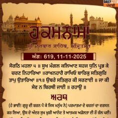 ਸ੍ਰੀ ਦਰਬਾਰ ਸਾਹਿਬ ਤੋਂ ਅੱਜ ਦਾ ਹੁਕਮਨਾਮਾ 11-11-2025