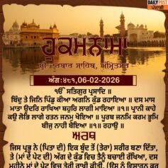 ਸ੍ਰੀ ਦਰਬਾਰ ਸਾਹਿਬ ਤੋਂ ਅੱਜ ਦਾ ਹੁਕਮਨਾਮਾ 6-2-2026