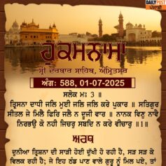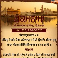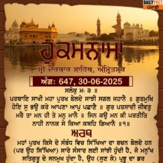 ਸ੍ਰੀ ਦਰਬਾਰ ਸਾਹਿਬ ਤੋਂ ਅੱਜ ਦਾ ਹੁਕਮਨਾਮਾ 25-6-2025