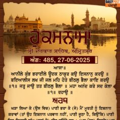 ਸ੍ਰੀ ਦਰਬਾਰ ਸਾਹਿਬ ਤੋਂ ਅੱਜ ਦਾ ਹੁਕਮਨਾਮਾ 27-6-2025