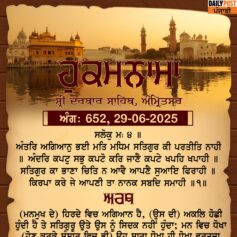 ਸ੍ਰੀ ਦਰਬਾਰ ਸਾਹਿਬ ਤੋਂ ਅੱਜ ਦਾ ਹੁਕਮਨਾਮਾ 29-6-2025