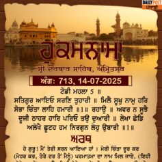 ਸ੍ਰੀ ਦਰਬਾਰ ਸਾਹਿਬ ਤੋਂ ਅੱਜ ਦਾ ਹੁਕਮਨਾਮਾ 14-7-2025