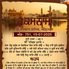 ਸ੍ਰੀ ਦਰਬਾਰ ਸਾਹਿਬ ਤੋਂ ਅੱਜ ਦਾ ਹੁਕਮਨਾਮਾ 15-7-2025