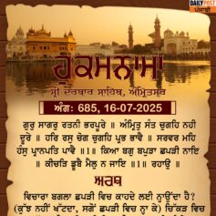 ਸ੍ਰੀ ਦਰਬਾਰ ਸਾਹਿਬ ਤੋਂ ਅੱਜ ਦਾ ਹੁਕਮਨਾਮਾ 16-7-2025