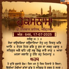 ਸ੍ਰੀ ਦਰਬਾਰ ਸਾਹਿਬ ਤੋਂ ਅੱਜ ਦਾ ਹੁਕਮਨਾਮਾ 17-7-2025