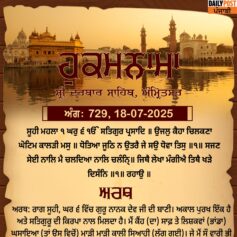ਸ੍ਰੀ ਦਰਬਾਰ ਸਾਹਿਬ ਤੋਂ ਅੱਜ ਦਾ ਹੁਕਮਨਾਮਾ 18-7-2025