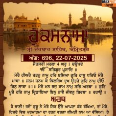 ਸ੍ਰੀ ਦਰਬਾਰ ਸਾਹਿਬ ਤੋਂ ਅੱਜ ਦਾ ਹੁਕਮਨਾਮਾ 22-7-2025