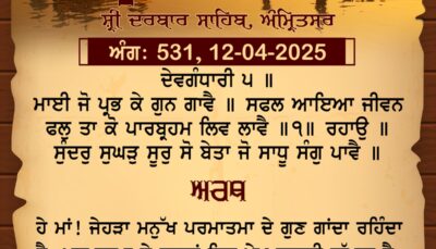 ਸ੍ਰੀ ਦਰਬਾਰ ਸਾਹਿਬ ਤੋਂ ਅੱਜ ਦਾ ਹੁਕਮਨਾਮਾ 19-12-2025