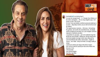 “ਮੈਨੂੰ ਤੁਹਾਡੀ ਯਾਦ ਆਉਂਦੀ ਹੈ, ਪਾਪਾ,” ਧੀ ਈਸ਼ਾ ਨੇ ਧਰਮਿੰਦਰ ਦੇ ਜਨਮਦਿਨ ‘ਤੇ ਸਾਂਝੀ ਕੀਤੀ ਭਾਵੁਕ ਪੋਸਟ
