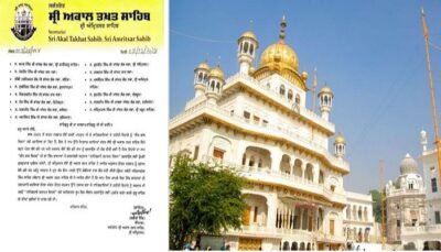 ਸ੍ਰੀ ਅਕਾਲ ਤਖ਼ਤ ਸਾਹਿਬ ਦੇ ਕਾਰਜਕਾਰੀ ਜਥੇਦਾਰ ਗਿਆਨੀ ਕੁਲਦੀਪ ਸਿੰਘ ਗੜਗੱਜ ਦੇ ਆਦੇਸ਼ ਅਨੁਸਾਰ ਸਕੱਤਰੇਤ ਸ੍ਰੀ ਅਕਾਲ ਤਖ਼ਤ ਸਾਹਿਬ ਨੇ...
