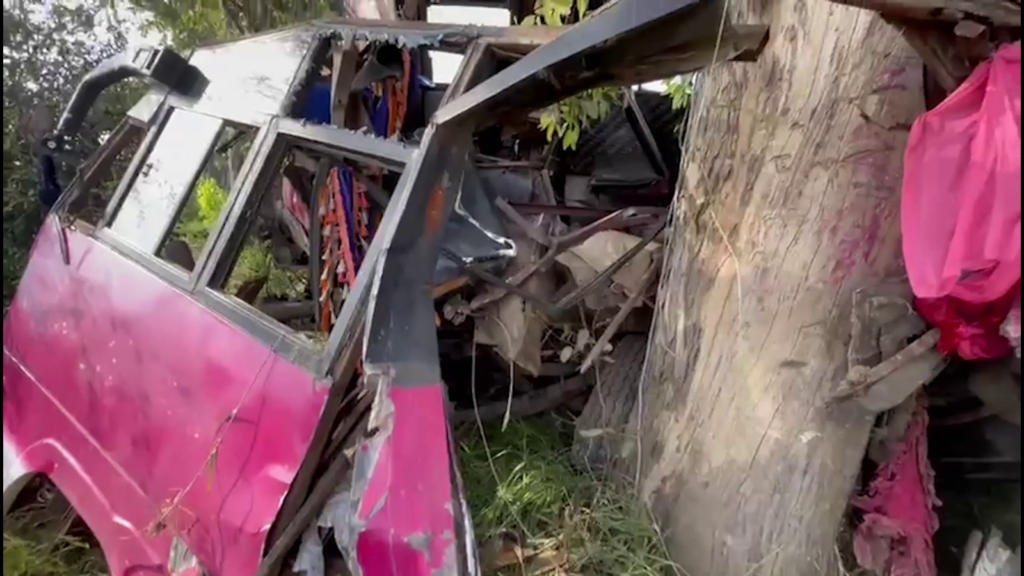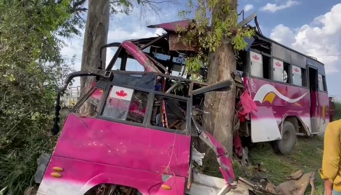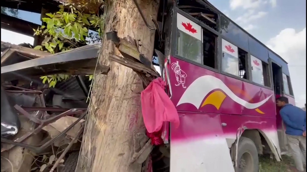 ਜਾਣਕਾਰੀ ਮੁਤਾਬਕ ਸਵਾਰੀਆਂ ਨਾਲ ਭਰੀ ਬੱਸ ਸੜਕ ‘ਤੇ ਜਾ ਰਹੀ ਹੁੰਦੀ ਹੈ, ਇਸ ਦੌਰਾਨ ਉਸ ਦੀ ਟੱਕਰ ਇੱਕ ਦਰੱਖਤ ਦੇ ਨਾਲ ਹੋ ਜਾਂਦੀ ਹੈ। ਟੱਕਰ ਇੰਨੀ ਭਿਆਨਕ ਹੁੰਦੀ ਹੈ ਕਿ ਬੱਸ ਦੇ ਦੋ ਟੁੱਕੜੇ ਹੋ ਗਏ। ਹਾਦਸੇ ਦੀਆਂ ਤਸਵੀਰਾਂ ਵੀ ਸਾਹਮਣੇ ਆਈ ਹਨ, ਜਿਸ ਨੂੰ ਵੇਖ ਕੇ ਕਿਸੇ ਦੇ ਵੀ ਲੂ ਕੰਢੇ ਖੜ੍ਹੇ ਹੋ ਜਾਣਗੇ।