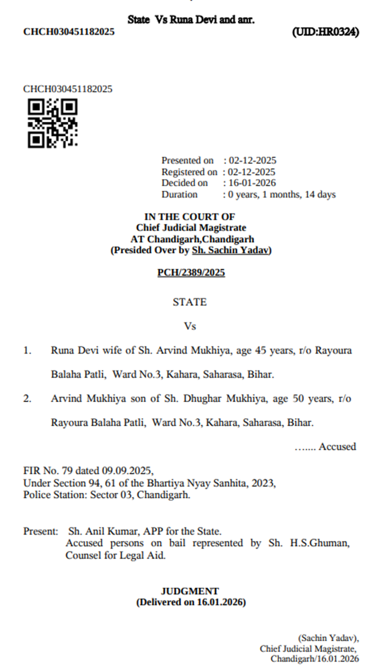 ਚੰਡੀਗੜ੍ਹ ਕੋਰਟ ਦਾ ਵੱਡਾ ਫੈਸਲਾ, ਬੱਚੀ ਨੂੰ ਸੁੱਟਣ ਵਾਲੇ ਜੋੜੇ ਨੂੰ ਜੇਲ੍ਹ ਦੀ ਥਾਂ ਕੀਤਾ ਰਿਹਾਅ!