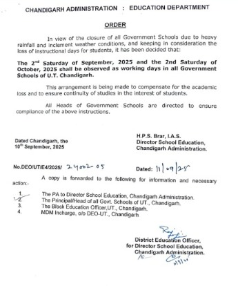 ਚੰਡੀਗੜ੍ਹ ਦੇ ਸਕੂਲਾਂ ‘ਚ ਨਹੀਂ ਹੋਵੇਗੀ Second Saturday ਦੀ ਛੁੱਟੀ, ਇਸ ਵਜ੍ਹਾ ਕਰਕੇ ਲਿਆ ਗਿਆ ਫੈਸਲਾ