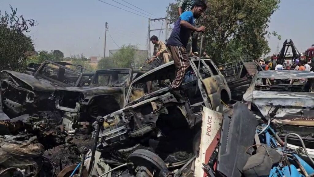 ਚਿੰਗਾਰੀ ਵਰਕਸ਼ਾਪ ਵਿਚ ਰੱਖੇ ਸੜਨਯੋਗ ਸਾਮਾਨ ‘ਤੇ ਡਿੱਗੀ ਜਿਸ ਨਾਲ ਤੁਰੰਤ ਅੱਗ ਫੈਲ ਗਈ। ਦੇਖਦੇ ਹੀ ਦੇਖਦੇ ਅੱਗ ਨੇ ਭਿਆਨਕ ਰੂਪ ਧਾਰ ਲਿਆ ਤੇ ਵਰਕਸ਼ਾਪ ਦੇ ਬਾਹਰ ਖੜ੍ਹੀਆਂ ਹੋਰ ਗੱਡੀਆਂ ਵੀ ਇਸ ਦੀ ਚਪੇਟ ਵਿਚ ਆ ਗਈਆਂ। ਅੱਗ ਦੀਆਂ ਲਪਟਾਂ ਇੰਨੀਆਂ ਤੇਜ਼ ਸਨ ਕਿ ਮੌਕੇ ‘ਤੇ ਮੌਜੂਦ ਲੋਕਾਂ ਵਿਚ ਹਫੜਾ-ਦਫੜੀ ਮਚ ਗਈ। ਸਥਾਨਕ ਲੋਕਾਂ ਨੇ ਤੁਰੰਤ ਫਾਇਰ ਬ੍ਰਿਗੇਡ ਨੂੰ ਸੂਚਨਾ ਦਿੱਤੀ। ਸੂਚਨਾ ਮਿਲਦੇ ਹੀ ਫਾਇਰ ਬ੍ਰਿਗੇਡ ਦੀਆਂ ਟੀਮਾਂ ਮੌਕੇ ‘ਤੇ ਪਹੁੰਚੀਆਂ ਤੇ ਅੱਗ ‘ਤੇ ਕਾਬੂ ਪਾਉਣ ਲਈ ਮੁਸ਼ੱਕਤ ਸ਼ੁਰੂ ਕਰ ਦਿੱਤੀ। ਘਟਨਾ ਵਿਚ ਕਈ ਵਾਹਨ ਸੜ ਕੇ ਸੁਆਹ ਹੋ ਗਏ ਹਨ ਜਿਸ ਨਾਲ ਭਾਰੀ ਆਰਥਿਕ ਨੁਕਸਾਨ ਹੋਇਆ ਹੈ।
