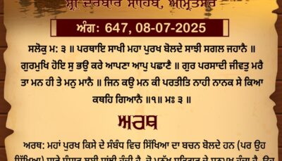 ਸ੍ਰੀ ਦਰਬਾਰ ਸਾਹਿਬ ਤੋਂ ਅੱਜ ਦਾ ਹੁਕਮਨਾਮਾ 16-12-2025
