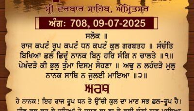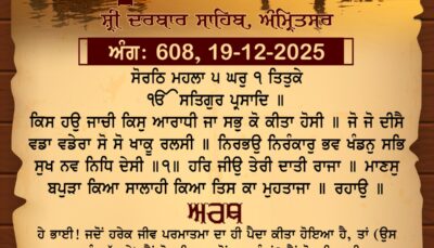 ਸ੍ਰੀ ਦਰਬਾਰ ਸਾਹਿਬ ਤੋਂ ਅੱਜ ਦਾ ਹੁਕਮਨਾਮਾ 19-12-2025
