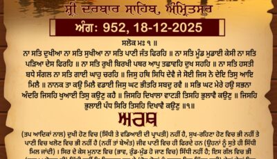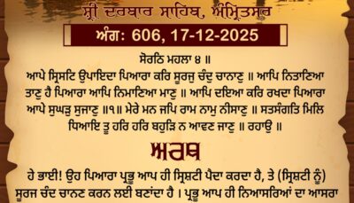 ਸ੍ਰੀ ਦਰਬਾਰ ਸਾਹਿਬ ਤੋਂ ਅੱਜ ਦਾ ਹੁਕਮਨਾਮਾ 17-12-2025