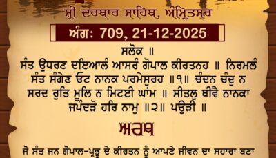 ਸ੍ਰੀ ਦਰਬਾਰ ਸਾਹਿਬ ਤੋਂ ਅੱਜ ਦਾ ਹੁਕਮਨਾਮਾ 21-12-2025
