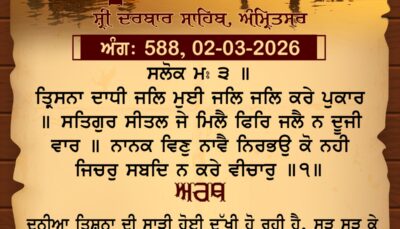 ਸ੍ਰੀ ਦਰਬਾਰ ਸਾਹਿਬ ਤੋਂ ਅੱਜ ਦਾ ਹੁਕਮਨਾਮਾ 2-3-2026