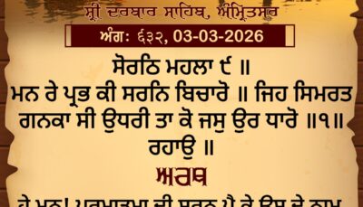 ਸ੍ਰੀ ਦਰਬਾਰ ਸਾਹਿਬ ਤੋਂ ਅੱਜ ਦਾ ਹੁਕਮਨਾਮਾ 3-3-2026