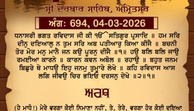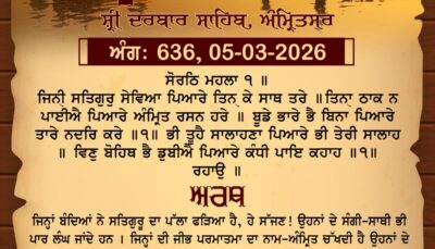 ਸ੍ਰੀ ਦਰਬਾਰ ਸਾਹਿਬ ਤੋਂ ਅੱਜ ਦਾ ਹੁਕਮਨਾਮਾ 6-3-2026