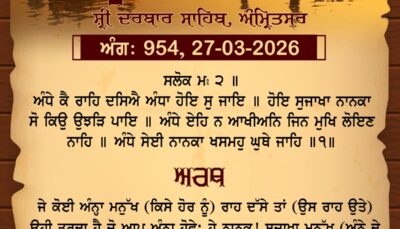 ਸ੍ਰੀ ਦਰਬਾਰ ਸਾਹਿਬ ਤੋਂ ਅੱਜ ਦਾ ਹੁਕਮਨਾਮਾ 27-3-2026