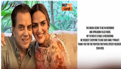 ਧਰਮਿੰਦਰ ਦੀ ਧੀ ਈਸ਼ਾ ਦਿਓਲ ਨੇ ਪਿਤਾ ਦੀ ਮੌਤ ਦੀ ਖ਼ਬਰ ਨੂੰ ਦੱਸਿਆ ਝੂਠ, ਕਿਹਾ-“ਮੇਰੇ ਪਾਪਾ ਠੀਕ ਹਨ’