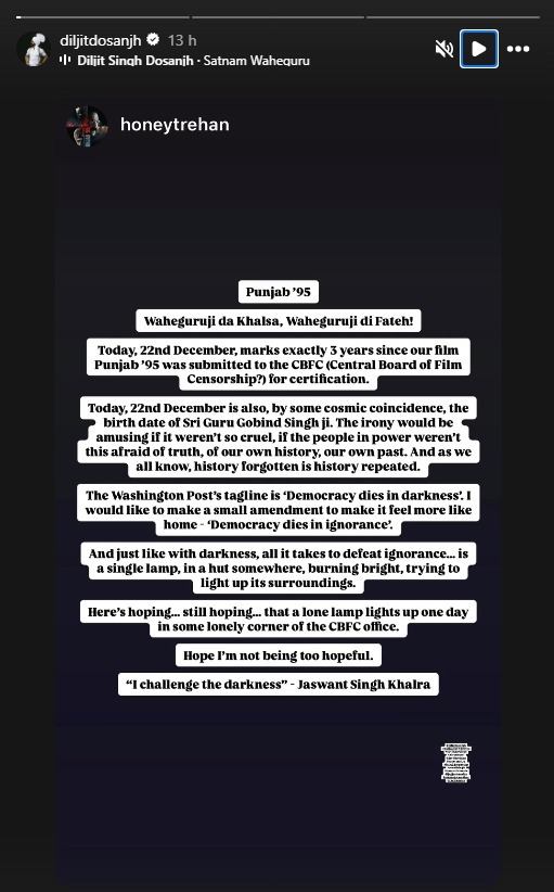 “Democracy Dies In Ignorance…”, ‘ਪੰਜਾਬ 95’ ਫ਼ਿਲਮ ਨੂੰ ਲੈ ਕੇ ਡਾਇਰੈਕਟਰ ਹਨੀ ਤ੍ਰੇਹਨ ਦਾ ਛਲਕਿਆ ਦਰਦ