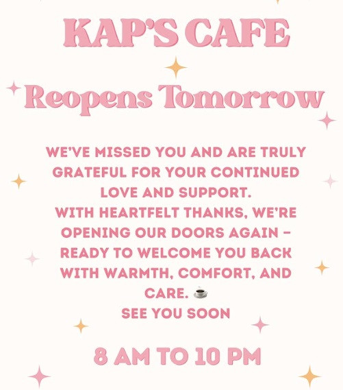 ਇਸ ਦੇ ਨਾਲ ਹੀ ਨੋਟ ‘ਤੇ ਲਿਖਿਆ ਹੈ, ‘ਕੈਪਸ ਕੈਫੇ, ਕੱਲ੍ਹ ਦੁਬਾਰਾ ਖੁੱਲ੍ਹ ਰਿਹਾ ਹੈ। ਅਸੀਂ ਤੁਹਾਨੂੰ ਮਿਸ ਕੀਤਾ। ਅਸੀਂ ਤੁਹਾਡੇ ਲਗਾਤਾਰ ਪਿਆਰ ਅਤੇ ਸਮਰਥਨ ਲਈ ਧੰਨਵਾਦੀ ਹਾਂ। ਅਸੀਂ ਤੁਹਾਡਾ ਸਵਾਗਤ ਕਰਨ ਲਈ ਆਪਣੇ ਦਰਵਾਜ਼ੇ ਦੁਬਾਰਾ ਆਰਾਮ ਅਤੇ ਦੇਖਭਾਲ ਨਾਲ ਖੋਲ੍ਹ ਰਹੇ ਹਾਂ। ਜਲਦੀ ਮਿਲਦੇ ਹਾਂ।’