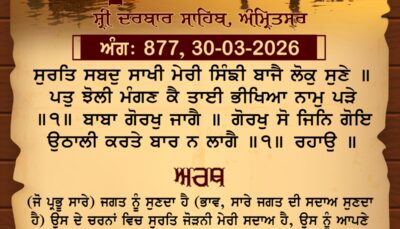 ਸ੍ਰੀ ਦਰਬਾਰ ਸਾਹਿਬ ਤੋਂ ਅੱਜ ਦਾ ਹੁਕਮਨਾਮਾ 30-3-2026