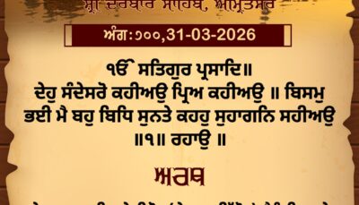 ਸ੍ਰੀ ਦਰਬਾਰ ਸਾਹਿਬ ਤੋਂ ਅੱਜ ਦਾ ਹੁਕਮਨਾਮਾ 31-3-2026