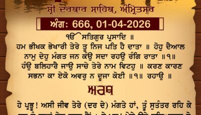 ਸ੍ਰੀ ਦਰਬਾਰ ਸਾਹਿਬ ਤੋਂ ਅੱਜ ਦਾ ਹੁਕਮਨਾਮਾ 1-4-2026