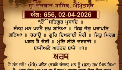 ਸ੍ਰੀ ਦਰਬਾਰ ਸਾਹਿਬ ਤੋਂ ਅੱਜ ਦਾ ਹੁਕਮਨਾਮਾ 2-4-2026