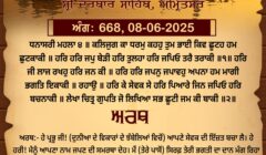 ਸ੍ਰੀ ਦਰਬਾਰ ਸਾਹਿਬ ਤੋਂ ਅੱਜ ਦਾ ਹੁਕਮਨਾਮਾ 10-6-2025