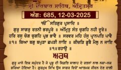 ਸ੍ਰੀ ਦਰਬਾਰ ਸਾਹਿਬ ਤੋਂ ਅੱਜ ਦਾ ਹੁਕਮਨਾਮਾ 14-3-2025