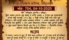 ਸ੍ਰੀ ਦਰਬਾਰ ਸਾਹਿਬ ਤੋਂ ਅੱਜ ਦਾ ਹੁਕਮਨਾਮਾ 7-10-2025