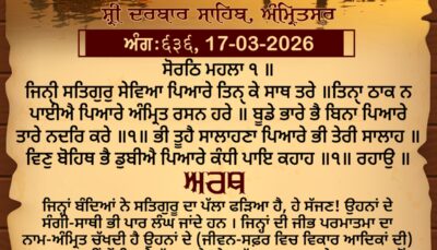 ਸ੍ਰੀ ਦਰਬਾਰ ਸਾਹਿਬ ਤੋਂ ਅੱਜ ਦਾ ਹੁਕਮਨਾਮਾ 17-3-2026