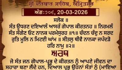 ਸ੍ਰੀ ਦਰਬਾਰ ਸਾਹਿਬ ਤੋਂ ਅੱਜ ਦਾ ਹੁਕਮਨਾਮਾ 20-3-2026