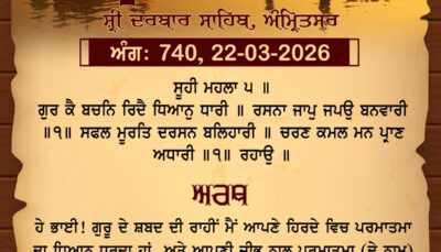ਸ੍ਰੀ ਦਰਬਾਰ ਸਾਹਿਬ ਤੋਂ ਅੱਜ ਦਾ ਹੁਕਮਨਾਮਾ 22-3-2026