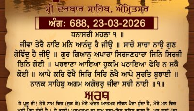 ਸ੍ਰੀ ਦਰਬਾਰ ਸਾਹਿਬ ਤੋਂ ਅੱਜ ਦਾ ਹੁਕਮਨਾਮਾ 23-3-2026