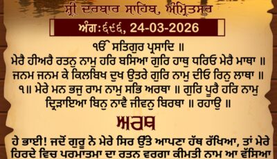 ਸ੍ਰੀ ਦਰਬਾਰ ਸਾਹਿਬ ਤੋਂ ਅੱਜ ਦਾ ਹੁਕਮਨਾਮਾ 24-3-2026