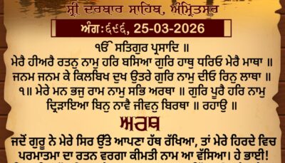 ਸ੍ਰੀ ਦਰਬਾਰ ਸਾਹਿਬ ਤੋਂ ਅੱਜ ਦਾ ਹੁਕਮਨਾਮਾ 25-3-2026