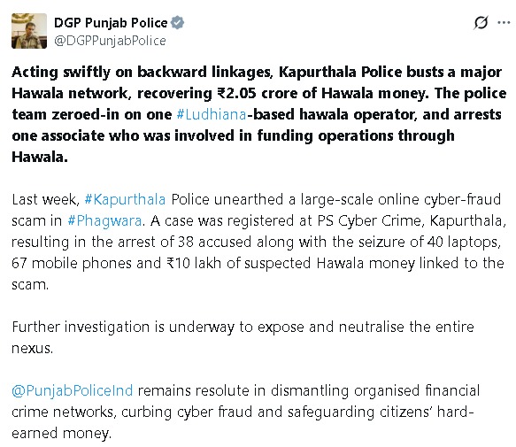 ਕਪੂਰਥਲਾ ਪੁਲਿਸ ਨੇ ਵੱਡੇ ਹਵਾਲਾ ਨੈੱਟਵਰਕ ਦਾ ਕੀਤਾ ਪਰਦਾਫਾਸ਼, 2 ਕਰੋੜ ਤੋਂ ਵੱਧ ਦੀ ਹਵਾਲਾ ਰਾਸ਼ੀ ਕੀਤੀ ਬਰਾਮਦ