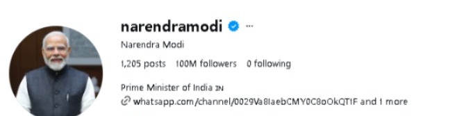 Instagram ‘ਤੇ PM ਨਰਿੰਦਰ ਮੋਦੀ ਛਾ ਗਏ ਹਨ। PM ਨਰਿੰਦਰ ਮੋਦੀ ਦੇ ਇੰਸਟਾਗ੍ਰਾਮ ‘ਤੇ 100 ਮਿਲੀਅਨ ਯਾਨੀ 10 ਕਰੋੜ ਫਾਲੋਅਰਸ ਹੋ ਗਏ ਹਨ। ਇਸ ਪਲੇਟਫਾਰਮ ‘ਤੇ ਇਹ ਉਪਲਬਧੀ ਹਾਸਲ ਕਰਨ ਵਾਲੇ ਉਹ ਦੁਨੀਆ ਦੇ ਪਹਿਲੇ ਨੇਤਾ ਬਣ ਗਏ ਹਨ। PM ਮੋਦੀ 2014 ਤੋਂ ਇੰਸਟਾਗ੍ਰਾਮ ਨਾਲ ਜੁੜੇ ਸੀ। ਇਥੇ ਉਨ੍ਹਾਂ ਦੇ ਅਮਰੀਕੀ ਰਾਸ਼ਟਰਪਤੀ ਡੋਨਾਲਡ ਟਰੰਪ ਤੋਂ ਦੁੱਗਣੇ ਤੋਂ ਵੀ ਜ਼ਿਆਦਾ ਫਾਲੋਅਰਸ ਹਨ। ਟਰੰਪ 43.2 ਮਿਲੀਅਨ ਫਾਲੋਅਰਸ ਦੇ ਨਾਲ ਦੂਜੇ ਨੰਬਰ ‘ਤੇ ਹਨ।
