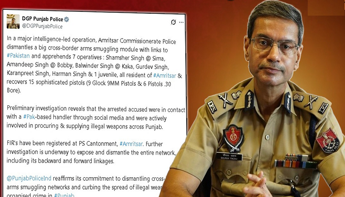 ਅੰਮ੍ਰਿਤਸਰ ਕਮਿਸ਼ਨਰੇਟ ਪੁਲਿਸ ਨੇ ਵੱਡੀ ਕਾਰਵਾਈ ਕਰਦੇ ਹੋਏ ਸਰਹੱਦ ਪਾਰ ਤੋਂ ਹਥਿਆਰ ਤਸਕਰੀ ਮਾਡਿਊਲ ਦਾ ਪਰਦਾਫਾਸ਼ ਕੀਤਾ ਹੈ। ਪੁਲਿਸ ਨੇ ਇਸ ਗਿਰੋਹ ਦੇ 7 ਮੈਂਬਰਾਂ ਨੂੰ ਗ੍ਰਿਫਤਾਰ ਕੀਤਾ ਹੈ ਤੇ ਹਥਿਆਰ ਤਸਕਰਾਂ ਕੋਲੋਂ 15 ਗੈਰ-ਕਾਨੂੰਨੀ ਹਥਿਆਰ ਵੀ ਬਰਾਮਦ ਕੀਤੇ ਹਨ।